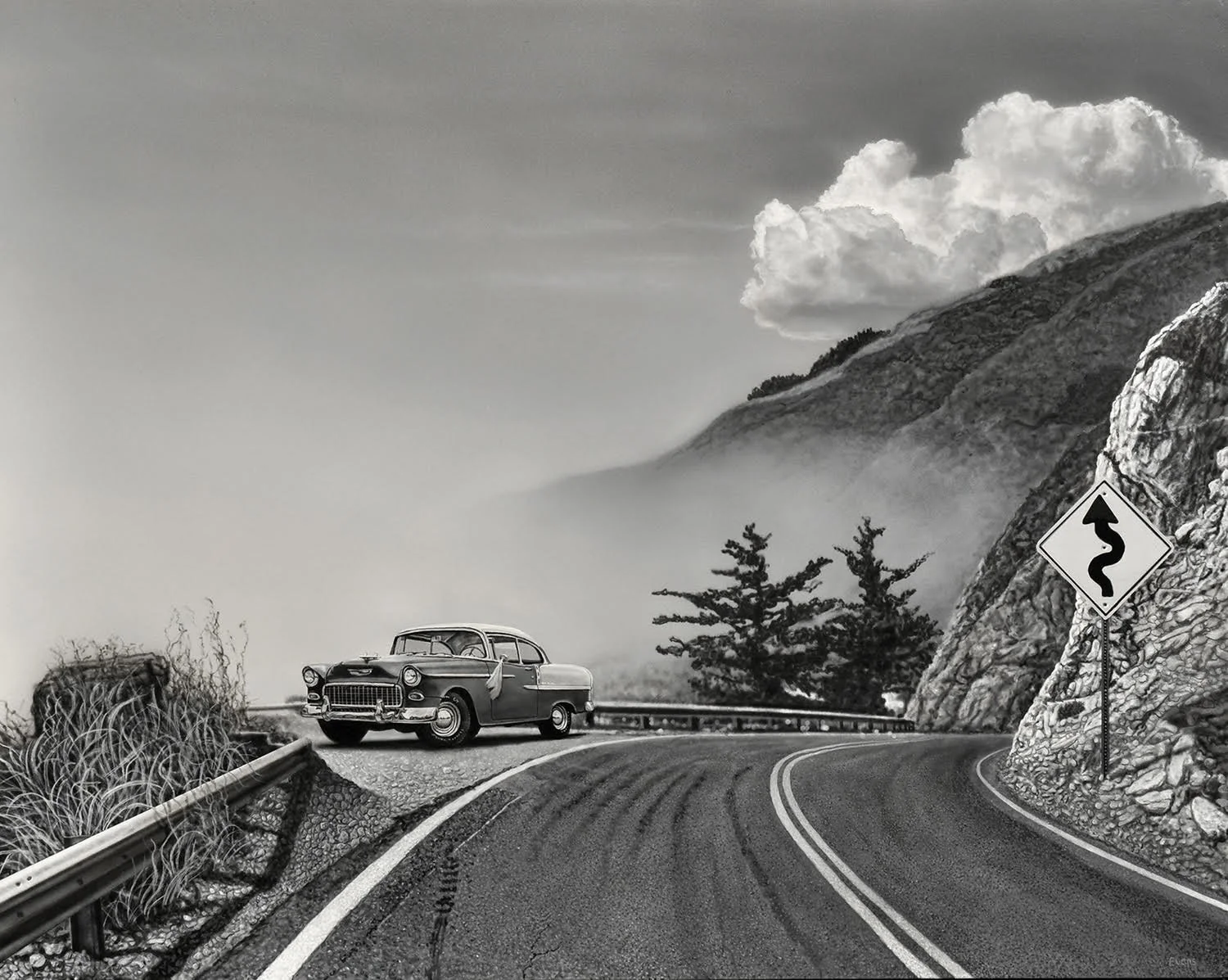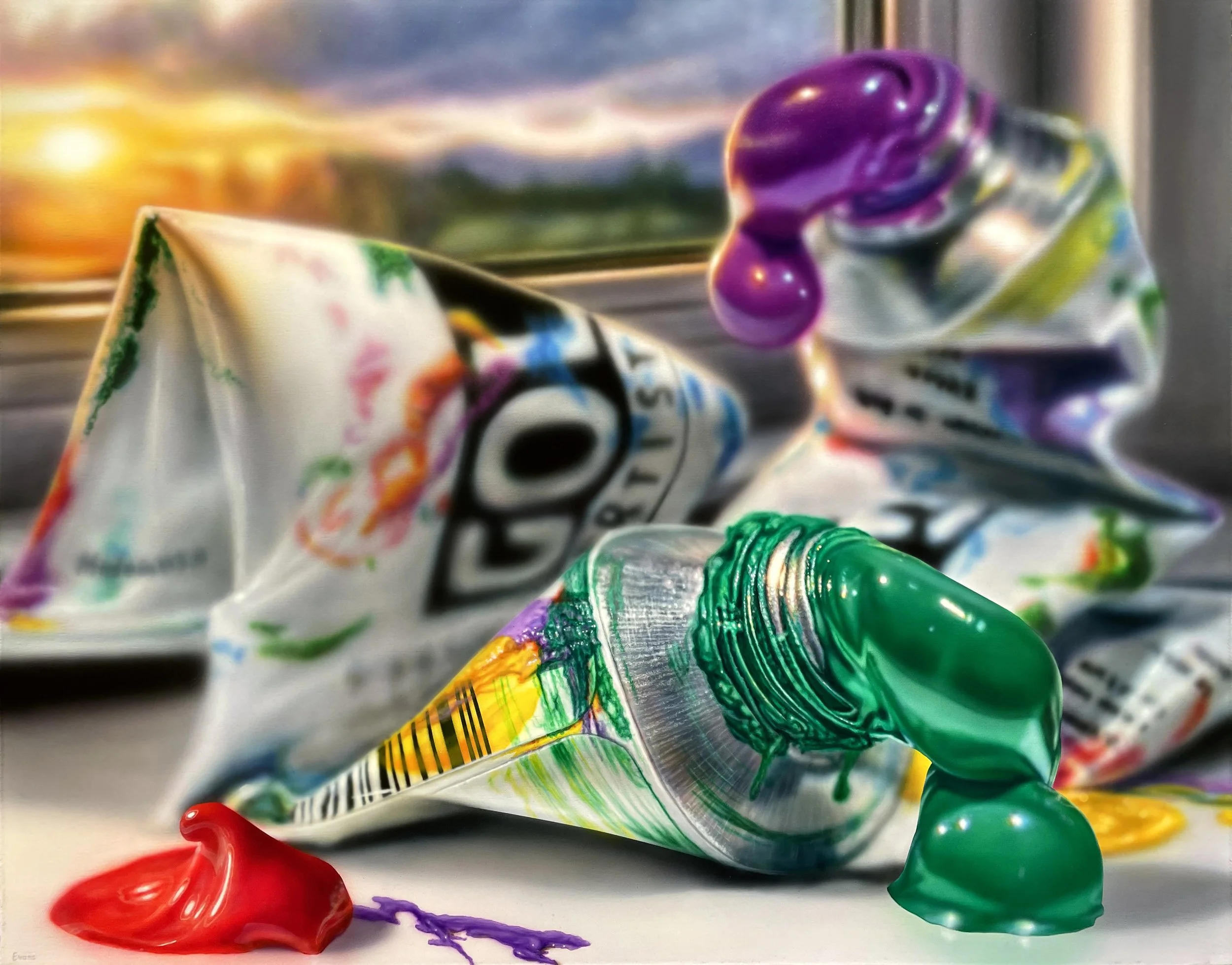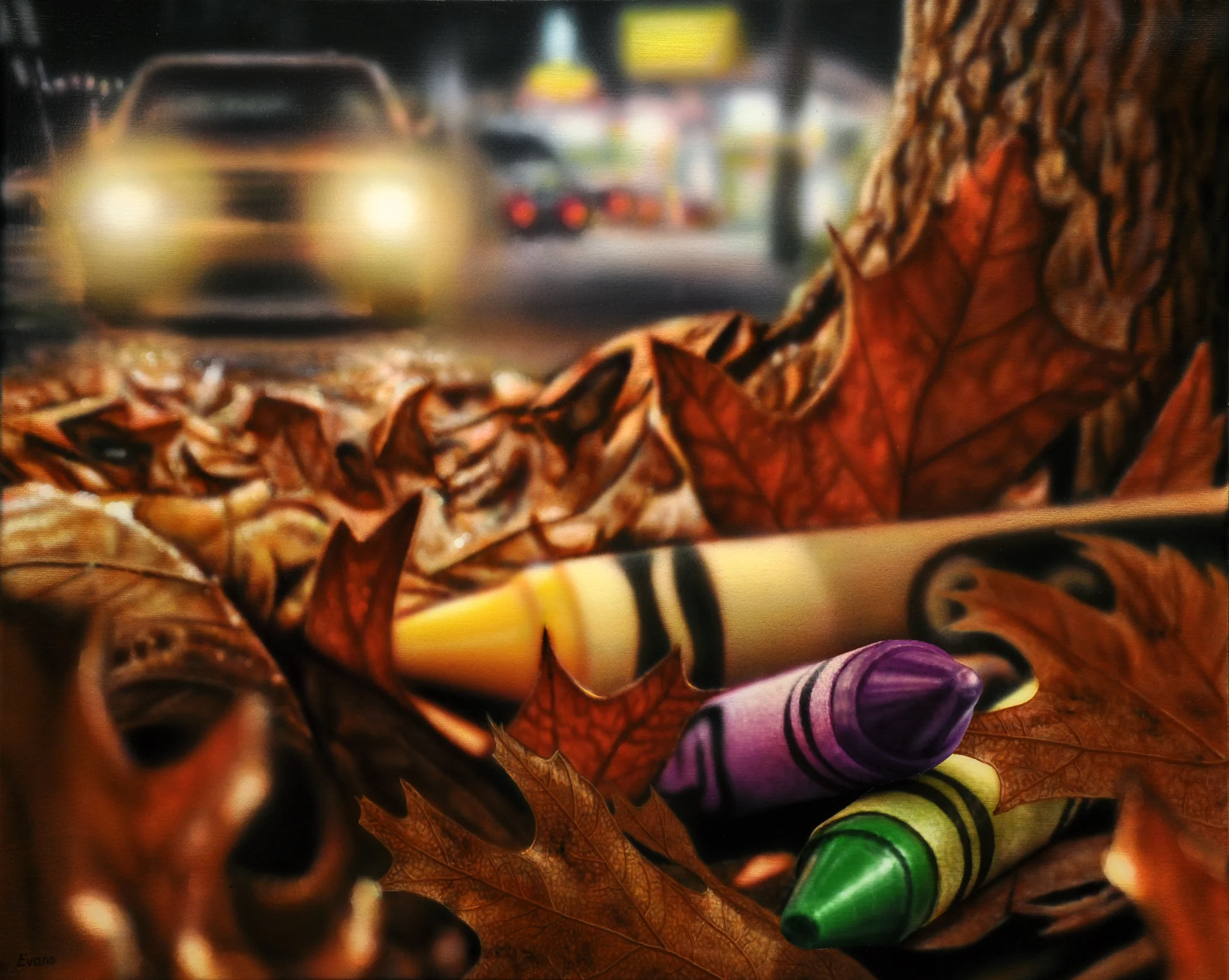For the past 35+ years, using a brush, airbrush, and artistic sensibilities rooted in Photorealism and Surrealism, Evans has been painting detailed landscapes, cityscapes, animals and still-life arrangements that engage and stimulate the viewer's imagination.