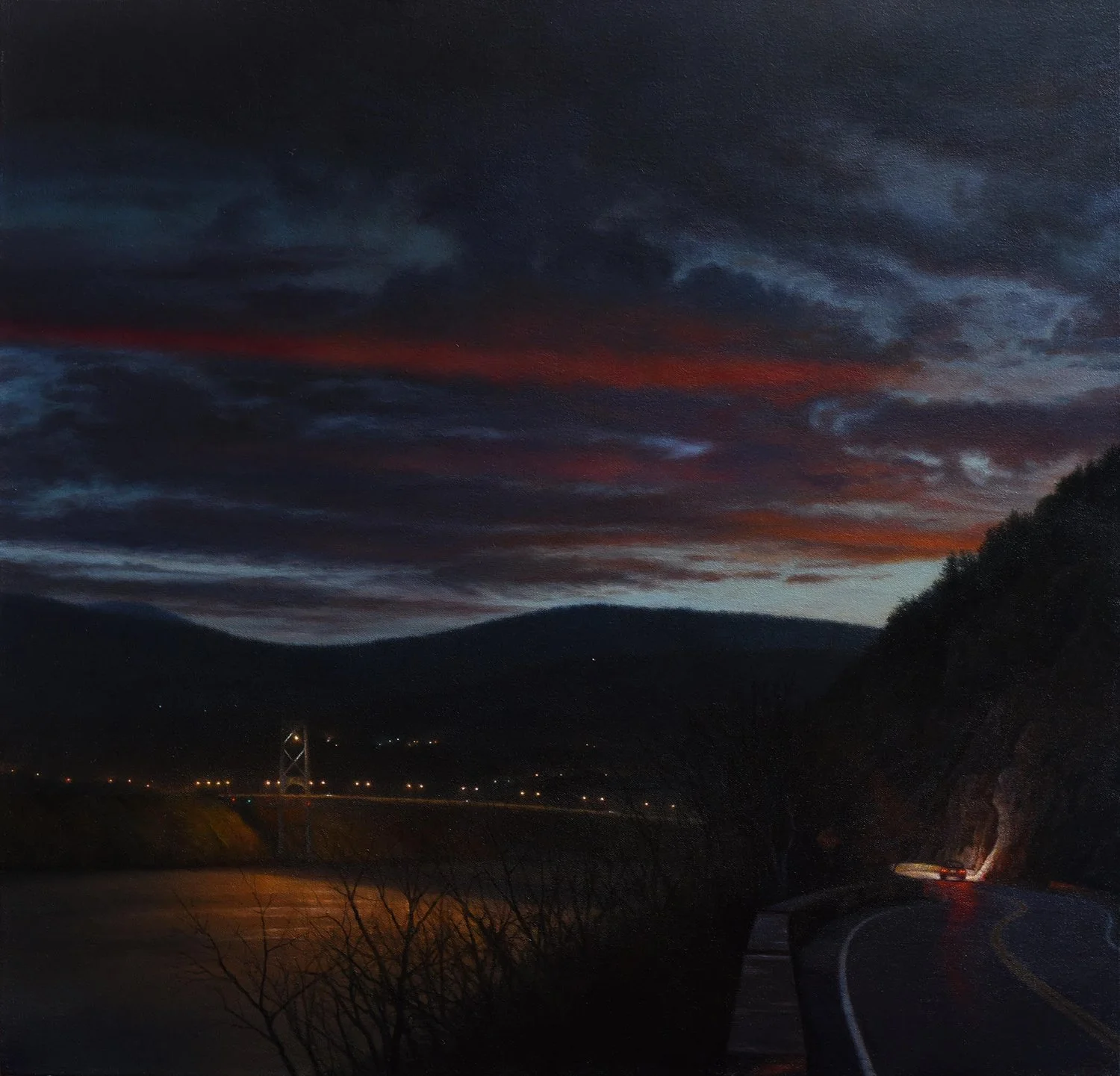 I've had a fascination for light within the nighttime landscape for almost as long as I can remember—when I was seven years old, I'd play an outdoor game with friends, where at dusk we had to dodge the headlight beams of cars coming into the neighborhood, diving behind trees or into ditches when the light was about to find us. I didn't have past events like this on my mind when I began to paint nighttime subjects in the early 1980's, but the attraction was definitely there, a kind of calling. How strange now, that I sometimes find myself collecting images out in a darkened landscape, where the headlights or tail lights of a passing car are the magic ingredient that enlivens a scene for a few moments, turning it into something I wish to paint.
